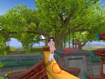 第三步:从屋檐起跳,用轻功飞到对面屋子的窗户上,之后可以轻松跳上城墙,下面的怪物们快来欢迎偶!