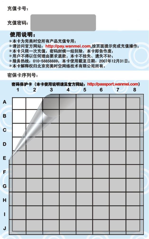 虽然完美时空密保卡发售了很长时间,但现在仍有部分玩家表示他们无法购买到带有密码保护功能的完美一卡通,因此我们现推出了完美时空密保卡邮寄业务。玩家可以通过更快捷的方式来购买带有密码保护功能的完美一卡通。
