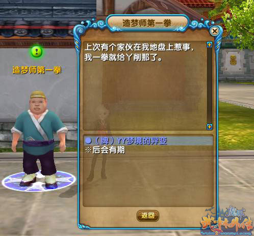 一、在京城NPC“造梦师第一拳”处,领取任务“(牌)YY梦境的异变”,获得剧本进入道具“梦魇铃”。