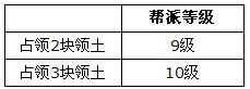 一个帮派可以占领的领土上限上调为3块领土,且占领多块领土的帮派需达到相应的帮派等级条件。