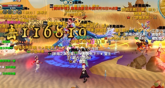 现在一线沙漠正在激战,第一势力VS情义及圣者,第一势力来了灬Pisces丶浔,血泣狱龙,heaven4把神武。
