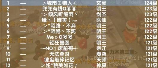 武林网通各服务器最新人物等级排行榜