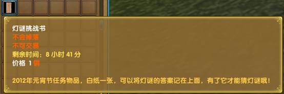 2、领取任务后,会自动获得任务物品‘灯谜挑战书’(包裹需留有空位)。