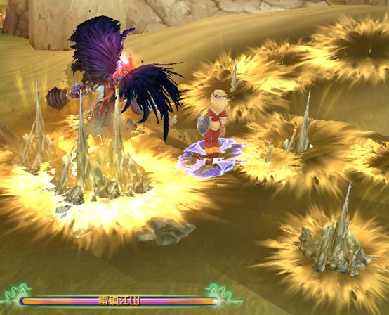 裂地十字爪:十字地震波,前后左右四个方向的地面飞沙走石如同泥潭