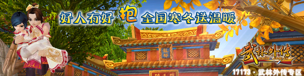 | 世界首款“喜剧网游”《武林外传》,再次引领时尚潮流,为了让大家在寒冷的冬天可以在游戏中找到丝丝温暖,在感恩节这个无比让人兴奋的节日中,推出了一项新的活动。《武林外传》GM抱抱团,让您在游戏中不再寂寞孤单,让GM陪伴你感受友人的关爱。 |