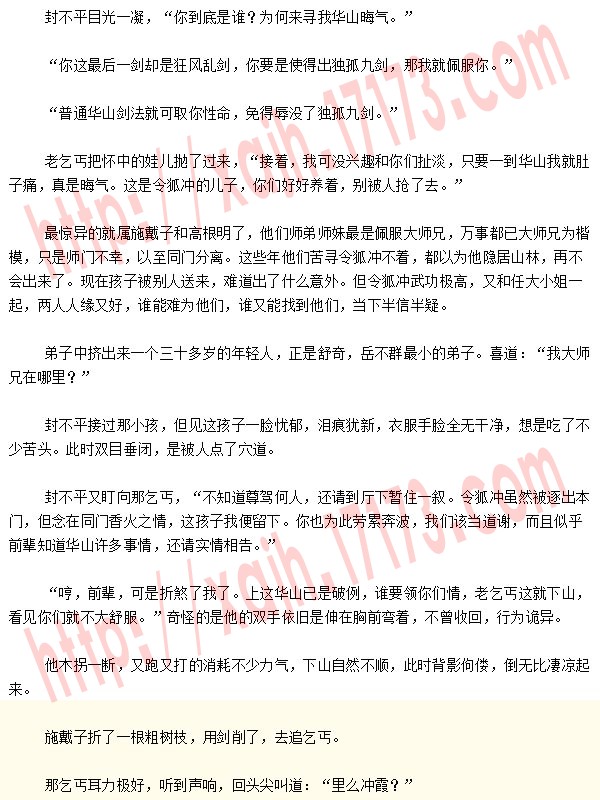 众人都是哀痛一片,封不平跪倒在地上,老泪纵横,“当真是天要亡我华山么?老朽死不足惜,实在愧对列为尊师……”众人又哭又骂,那里还有英雄气概。