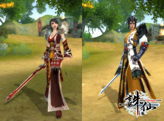 其实从完美世界到诛仙一直有,颜色和动作不同。还有那个拿尺子的老头子,其实是诛仙天弈战场中就可以看到,改了一点点,后者没有拿。