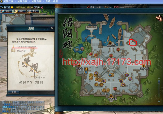 任务接取需求:首先您的等级需要达到50级,50级之后可以在洛阳城内接取任务,每次任务会给玩家一个洛阳城内的随机坐标,玩家只要到达坐标点就会出现您所要击杀的任务怪。每次任务系统会给您100世界贡献度,每天只允许做10次。