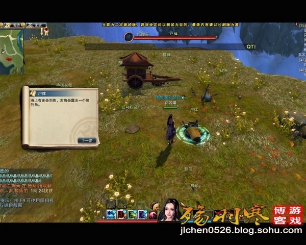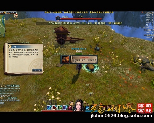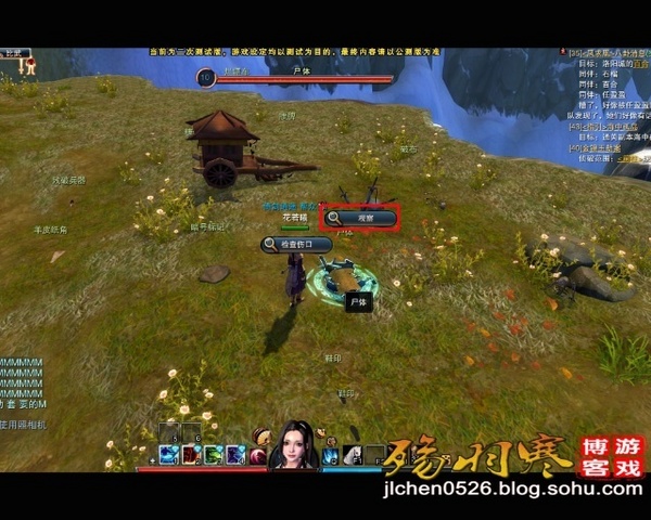 帮派地图内,打开帮会界面,点击上图红框标注的图标,帮会界面右边会出现悬案侦破的介绍,点击蓝框标注的NPC“闻人司”的名字,自动寻路悬案侦破的对话框选择“金镶玉劫案”点接受,传送到场景地图点击“尸体”,选择“观察”虽然没有线索,但是点“下一步”关闭,会出现一个“看新”的按钮(忘了截