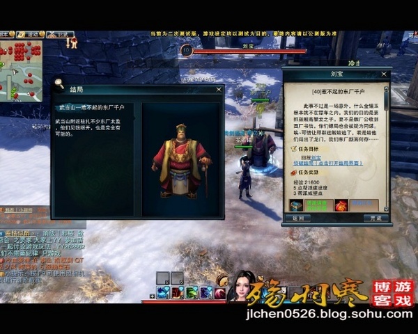 帮派地图内,打开帮会界面,点击上图红框标注的图标,帮会界面右边会出现悬案侦破的介绍,点击蓝框标注的NPC“闻人司”的名字,自动寻路悬案侦破的对话框选择“金镶玉劫案”点接受,传送到场景地图点击“尸体”,选择“观察”虽然没有线索,但是点“下一步”关闭,会出现一个“看新”的按钮(忘了截