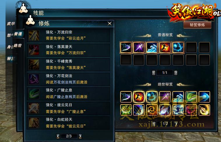 - (2013-10-13) 笑傲江湖新资料片 门派秘籍修炼及栏位增加