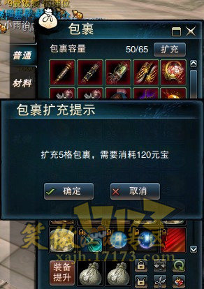 到60格以后,要再扩充就要120元宝了(小编忘记在60截图了o(╥﹏╥)o )