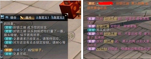 首先声明我没那么二, 是我朋友被黑的。昨晚让朋友帮忙收2组沙子,结果被黑60多D 。。 我很纳闷的是这个交易系统,必须双方先锁定交易, 然后点交易,才能成功, 如果其中一方在过程中, 变换了交易物品,是要重新锁定的,那么在这种情况下,交易方是有多二,才会在对方什么都没有的