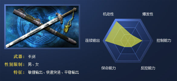 华山剑法整体轻灵飘逸,机巧快捷,出招速度奇快,常常奇招迭出,令敌人猝不及防。他能够快速对敌人造成高爆发性的伤害,在团队中常常扮演着突进的角色。