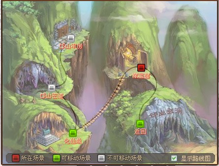 进入一个场景后,你会看到场景的地图。玩家需要按照路线图进行移动,以示意图为例。绿色按钮代表可以移动的场景,灰色代表不可移动的场景。