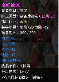 绿色装备:游戏中一般的物品,属性略高于白色物品,拥有2个附加属性。
