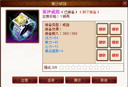 每件装备都可以强化到9级,装备每强化一级,其基本属性都会有所提升。