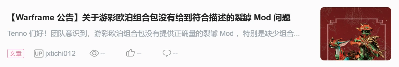 官方还发了则游彩欧泊组合包缺少应给裂罅 Mod 的公告,会给没拿到足量 Mod 的玩家补上的,详情可以查看这里:
