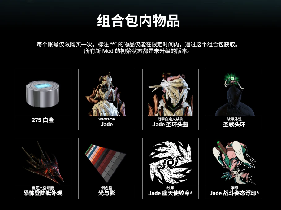 -官网卖 19.99 美元的Jade 合唱组合包将会在北京时间 2 月 27 日凌晨 0 点下架,这个组合包里面只独占了 Jade 战斗姿态浮印,所以有需要这个浮印的赶紧可以掏钱了。