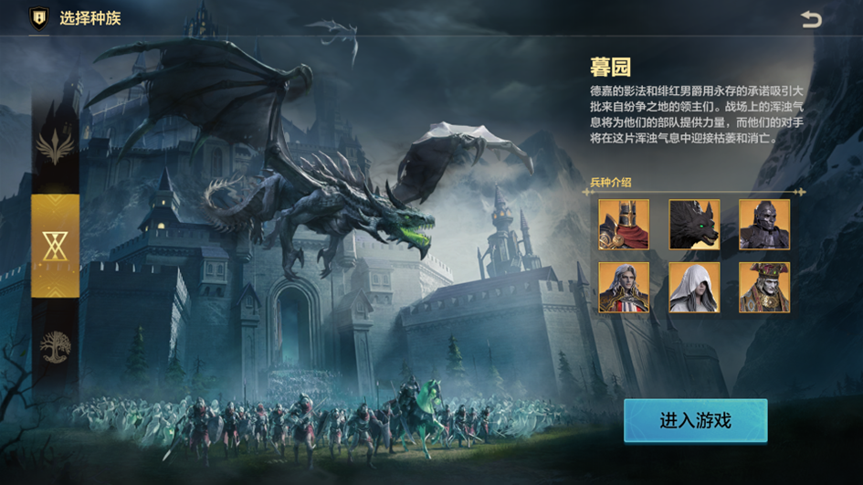 进入游戏后,领主大人面对的首要问题便是选择种族,这也会影响领主大人后续的发展方向。