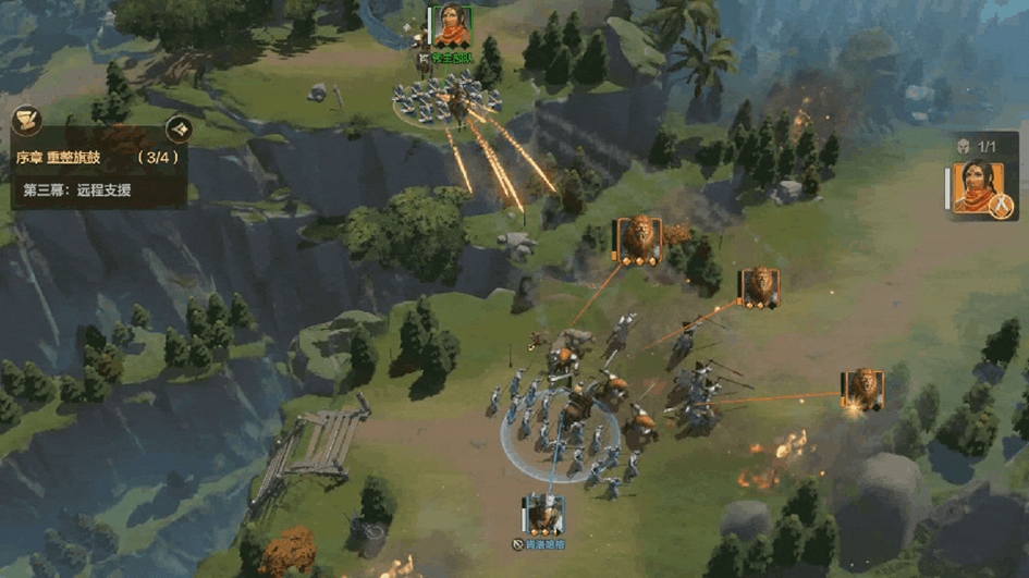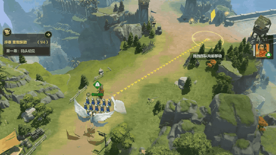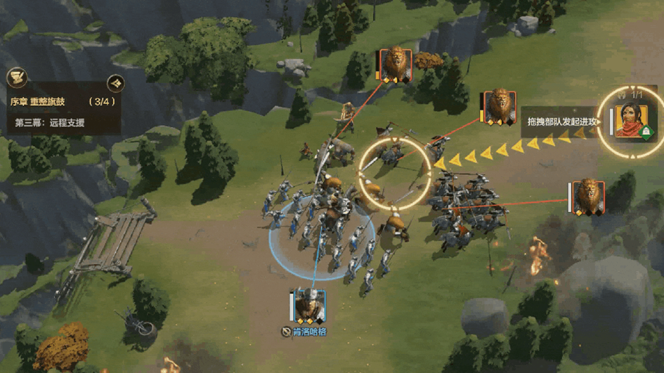 移动:按住选择己方单位,拖动到地图空地上,即可指挥队伍移动。