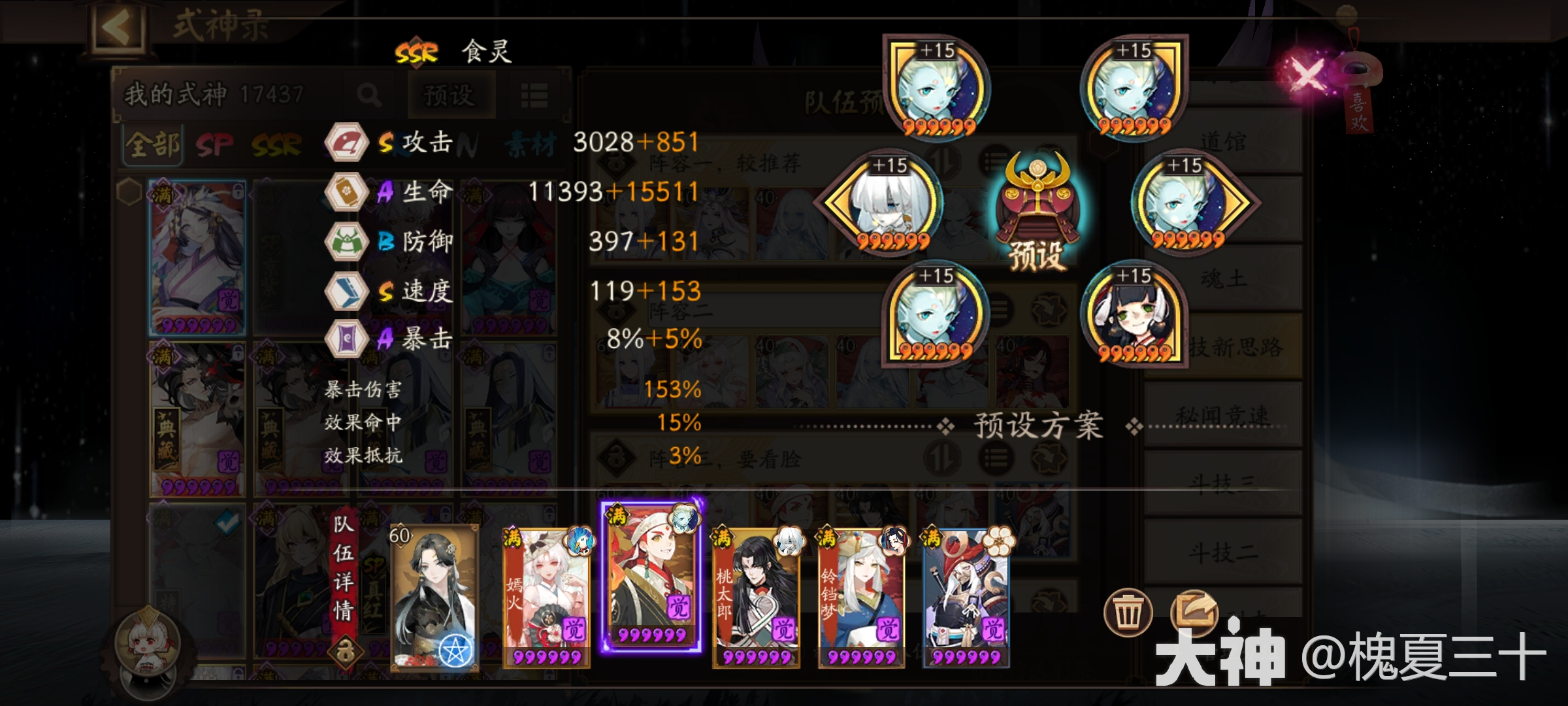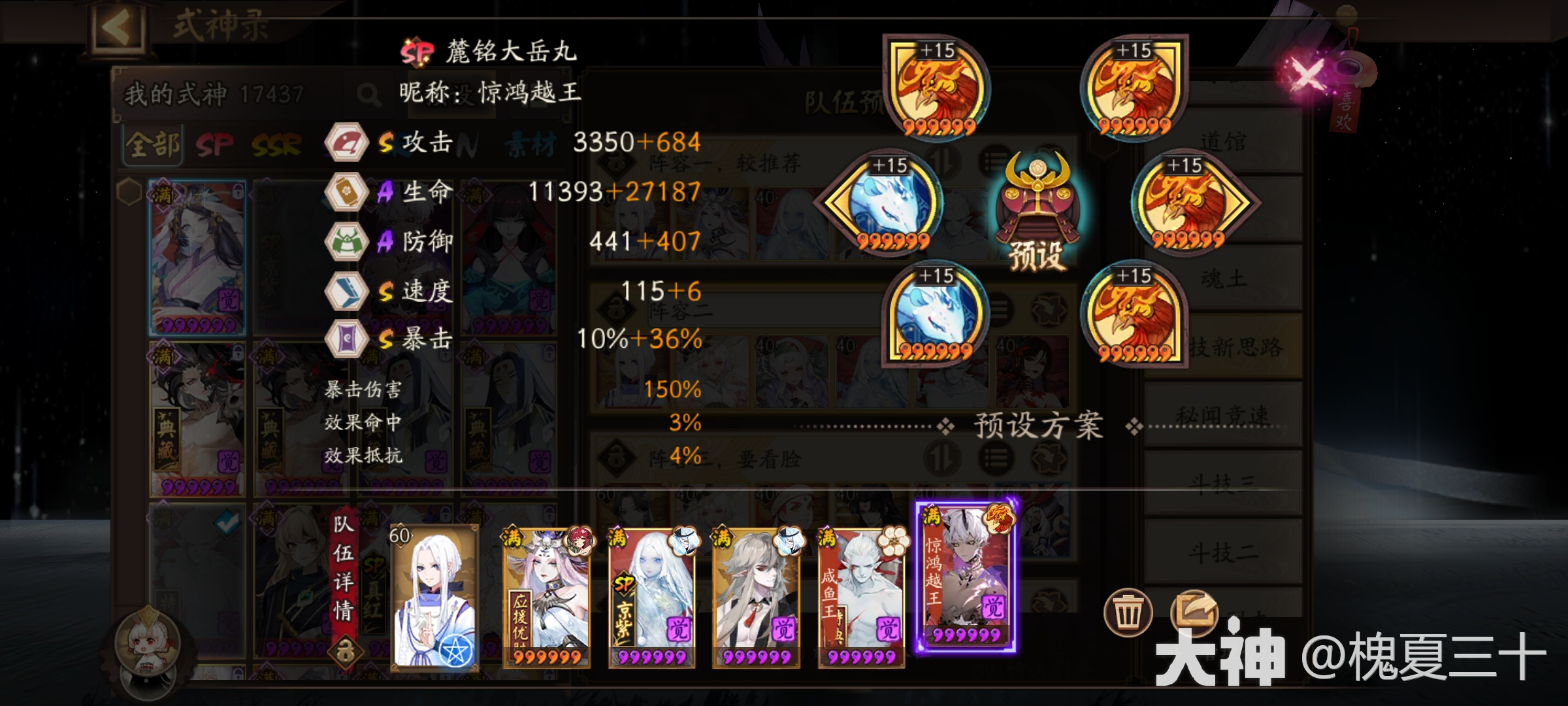 阵容三、离食鸦切御,该阵容强度不低,并且输赢都很快,唯一有个缺点就是很看运气,如果运气不好连跪五六局也是家常便饭的。大家记得把食灵和鸦天狗从妖术调成普攻,SP御馔津射飞镖后会给鸦天狗拉条,此时鸦天狗如果协战好的话可以一波带走对方。