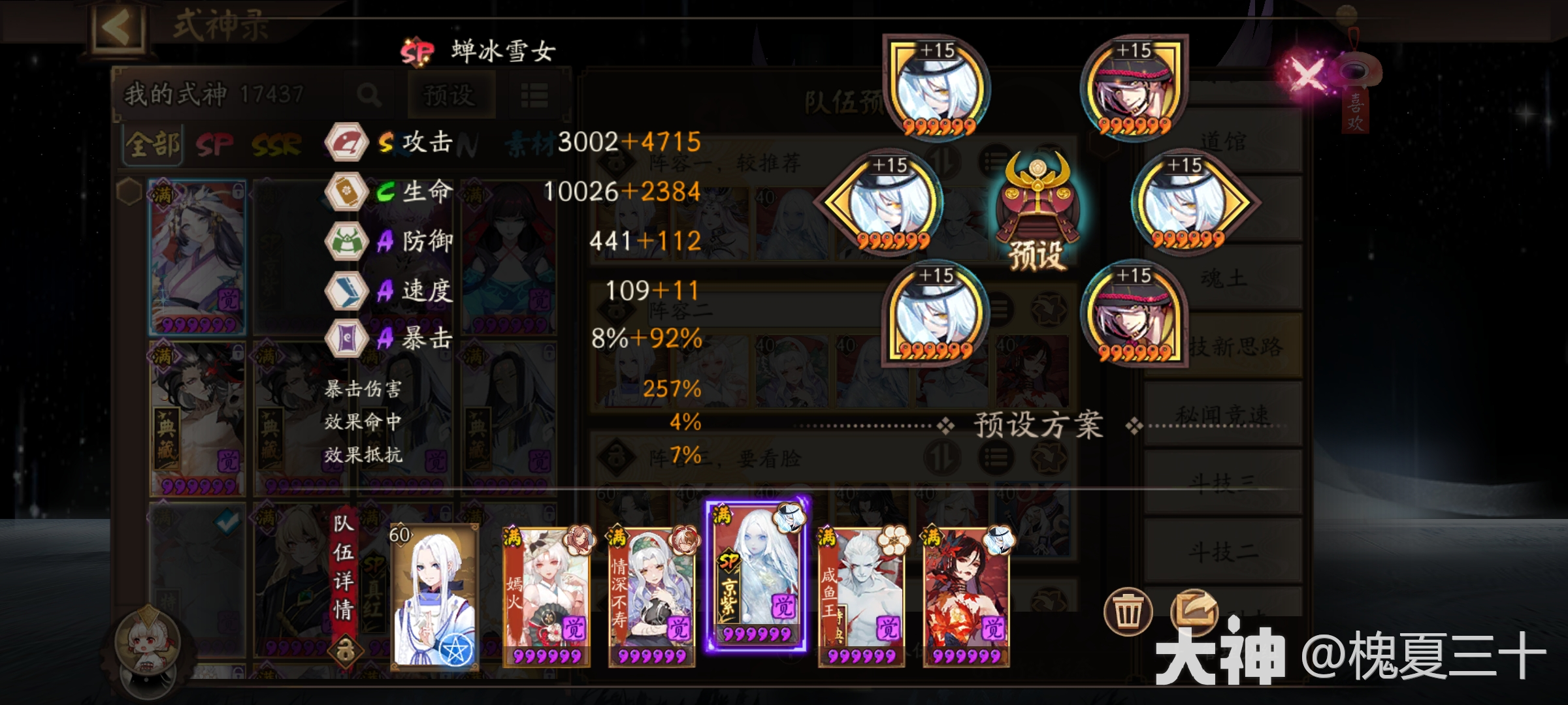 阵容一、千夜雪川麓,如果没有麓丸或者雪女的小伙伴可以拿镜姬不知火或者SP灯替代,如果需要变阵思路的话可以去看看我之前分享的攻略。