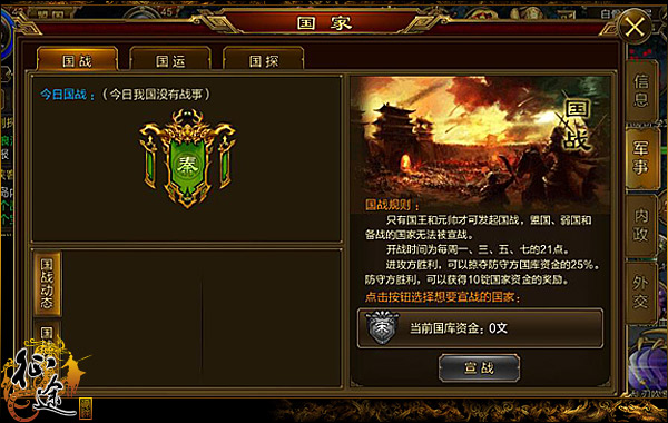 注意事项:每周只有周一、三、五、七的21点可进行国战,不管你是进攻方还是防守方取胜都能获得功勋。
