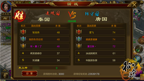 完美的战前决策准备加上完美的战中表现,使秦国完美夺得胜利的桂冠,一场精彩的国战后,要为失败找原因,还要为成功找方法。想要成功,不仅要在战前动员国内的小伙伴积极参与国战,在国战中拧成一股绳,才会有更好地表现。得力盟国的帮助也是国战中必不可少的一部分。国战中拥有得力的队友与给力的盟友,国战才会更加完美。