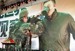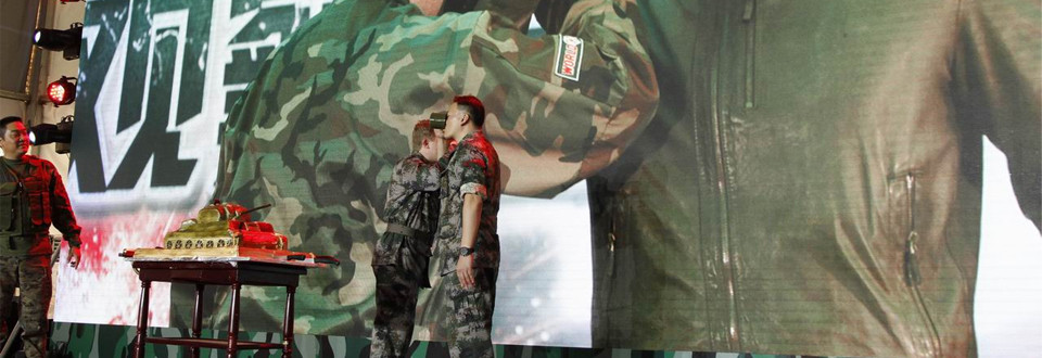 2014年在《战机世界》发布会。被布置成战地的发布会现场,再次身着军装的维克多在王雷雷唱完《国际歌》之后,临时上台,用俄语重新唱了一遍。在场的每一个人在恍惚之中,置身于硝烟弥漫的战场,与战友并肩走过坦克履带压出的痕迹,此时战机从空中呼啸而过,战争刚刚打响……